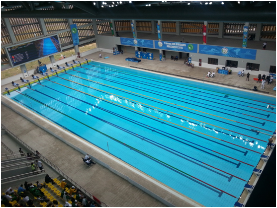 Congo (Brazzaville) Sports Center is the main venue of the 11th African Games in 2015, including a main stadium with a capacity of 60,000 people, a comprehensive gymnasium with a capacity of 20,000 people, a swimming pool with a capacity of 2,000 people and various outdoor supporting venues. Including: Track and Field Training Field, Football Warm-up Field, Outdoor Swimming Pool, Diving Pool, Tennis Court, Handball Court, Basketball Court, Beach Football Court, Beach Volleyball Court, Bowling Court. Our company has undertaken the construction of part of the sports technology of the center: the plastic runway surface engineering of the main stadium and the track and field training ground, the natural lawn engineering of the football field, the artificial lawn engineering of the football warm-up field, the water treatment system installation engineering of the swimming pool, the warm-up pool and the diving pool, the ceramic tile pasting engineering of the pool body, the surface engineering of various outdoor venues, the seat installation engineering of various venues, Supporting sports equipment installation works, site foundation construction technical guidance, torch tower oil supply and ignition combustion system construction. On July 29th, 2015, the Sports Center successfully passed the acceptance of the French Supervisor and the Owner's Acceptance Committee of Congo, and the main stadium track and field venue was awarded the IAAF Class I venue certification certificate.