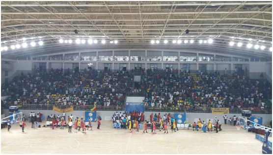 Congo (Brazzaville) Masambadeba Gymnasium is a new modern gymnasium for the Games, which can accommodate 3000 people. It mainly undertakes the volleyball competition of the Games. Our company has undertaken the construction of part of the sports technology in the center. Including: basketball floor surface construction, bleacher seats, professional competition lighting system, sound reinforcement system, intelligent flag raising, fire alarm system, monitoring system, sports equipment installation, imported PVC surface installation and laying, competition guarantee and operation during the Games, etc.