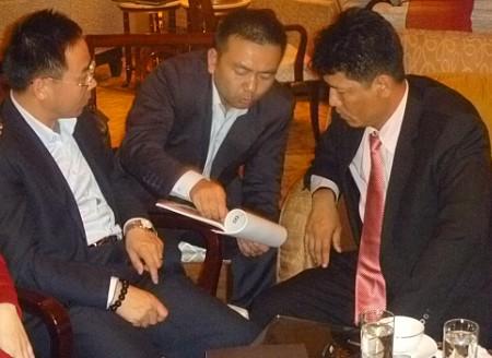 Figure 2: General Manager Li Haibin, Deputy General Manager Pang Xiaofeng and Director Wu Jinmaojue discuss technical issues