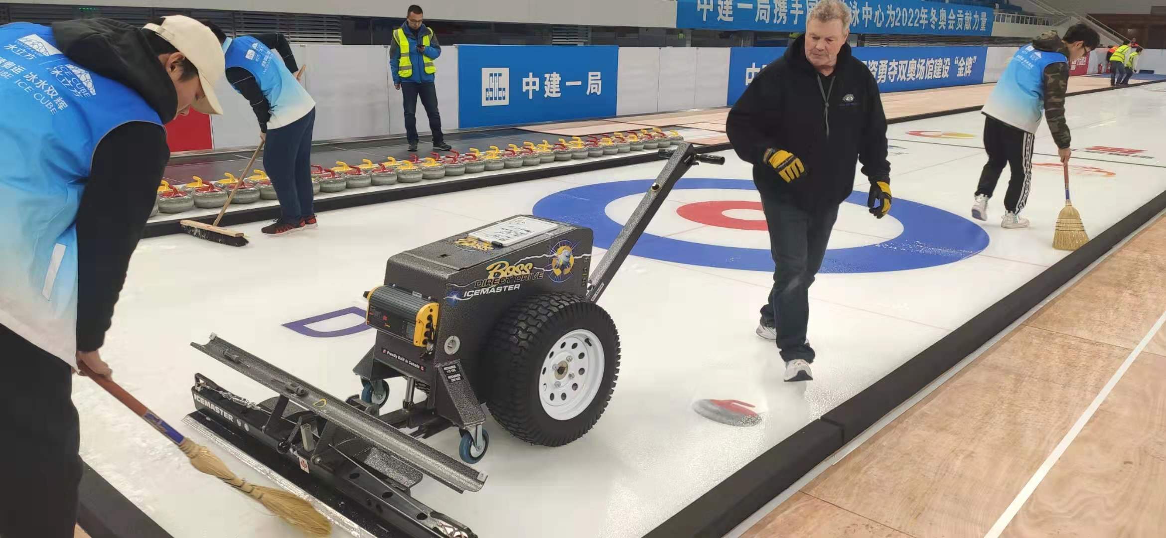 The picture above shows that Mr. Hans Wuchrich, who is approved by the World Curling Federation, is making ice on the curling track. During the ice-making period, Mr. Hans Wuchrich and Mr. Mark Callan adjust the control data of dehumidifiers and ice-making units according to the changes of indoor environment at any time to ensure the quality of ice surface in strict accordance with international standards. After completion, the ice surface is crystal clear and becomes the "First Piece of Ice" in the 2022 Winter Olympic venues.