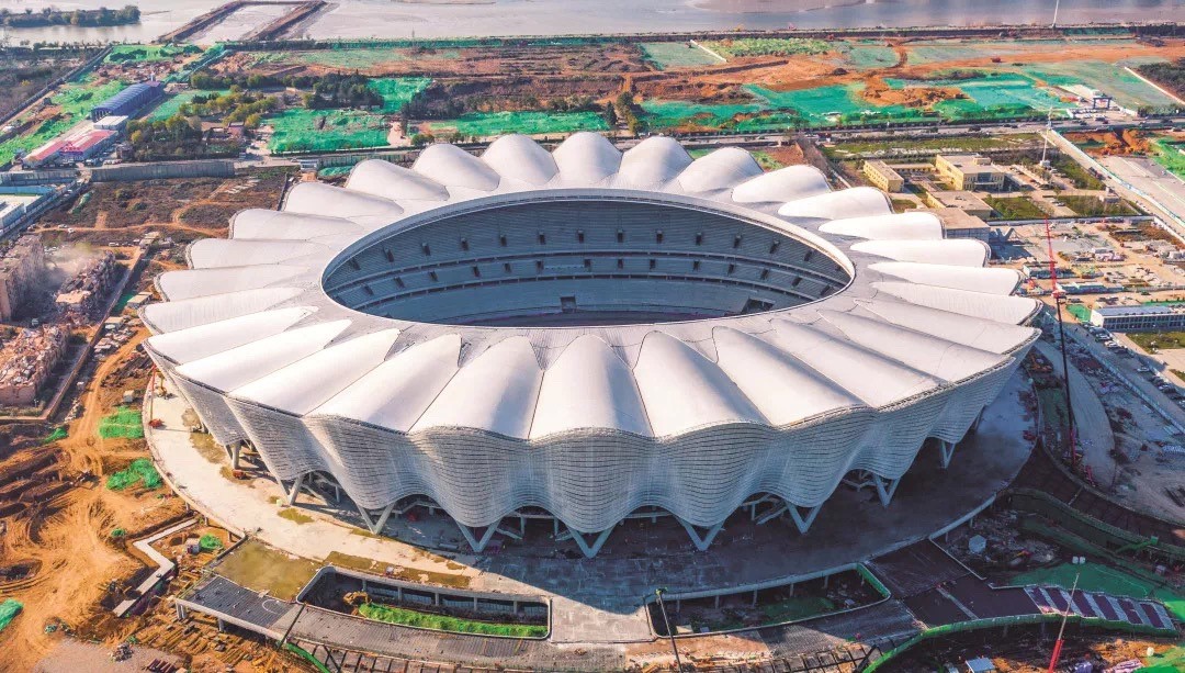 Xi'an Olympic Sports Center is located in the core area of Xi'an International Port Area, at the core of the east-west central landscape axis, with Bahe River in the west and Lishan Mountain in the east. The exterior shape of the main stadium that won the bid is Xi'an Flower "Pomegranate Flower", with a total of 28 petals and 28 corresponding V-shaped columns. The design concept is mainly "Flourishing Flower, Silk Road Sailing", which echoes The Belt and Road Initiative. The stadium will have 60,000 seats, and the Xi'an Olympic Sports Center Stadium is also the first smart stadium in China to achieve full 5G coverage. The Xi'an Olympic Sports Center will host the opening ceremony, track and field competitions and Paralympic related events of the 14th National Games in 2021.
