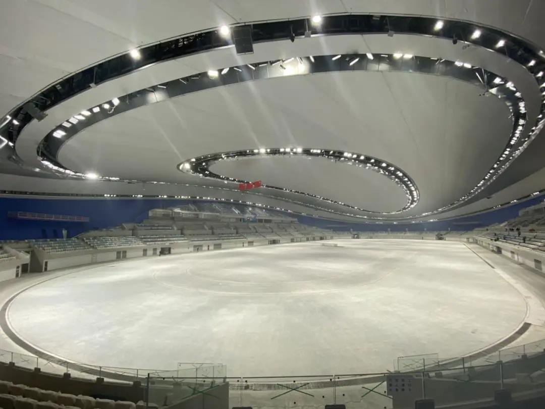 The National Speed Skating Oval adopts a unique full ice surface design, with an ice surface area of nearly 12000 square meters, and is divided into ten areas, which can be used to make ice according to the characteristics of different ice projects. The ice-making road speed skating competition area includes three 400-meter speed skating competition tracks. There is also a practice track inside the speed skating track, a 60-meter by 30-meter multi-functional ice rink, a 61-meter by 31-meter multi-functional ice rink (ice hockey, figure skating, short track speed skating and other functions) and a movable ice rink, which can meet the multi-functional needs of the event at the same time. Through the automatic control of high-precision refrigeration system, the temperature difference of the ice surface is controlled within 0.5°C. The multi-functional ice surface can meet the international competition standards of short track speed skating, figure skating, curling, ice hockey and other sports.