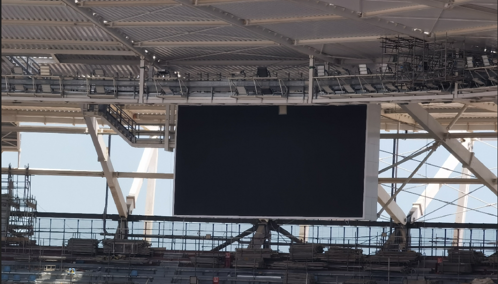 Stadium display screen: It is composed of two P10 display screens of 81 square meters. At present, the screen body and ancillary equipment have all been hoisted and installed, and the commissioning work will begin soon.