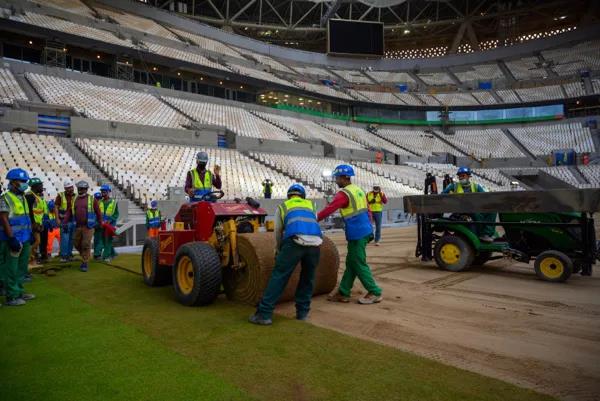 With the last piece of turf installed in place, the special football field project of Qatar's Russel Stadium, the main venue of the 2022 FIFA World Cup, which was constructed by Pan China Sports, was fully completed on September 3th,2021.