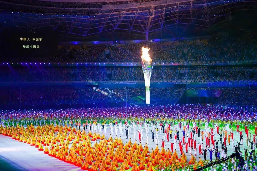 From the opening ceremony prelude "Welcome Drum Array" and "National Root", "Yan'an Soul", "Chinese Dream" to Yang Qian, the first gold medalist of the Tokyo Olympic Games, lighting the main torch tower, the brilliant revival fire was first ignited in the central and western regions of the motherland. With the melodious singing, the stadium of Xi'an Olympic Sports Center is like a beautiful pomegranate flower, blooming on the bank of Bahe River.