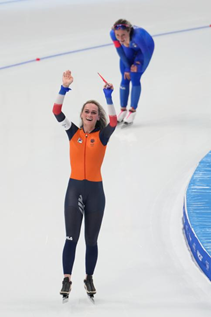 The strongest players appeared in the last group. The 3000-meter gold and silver medalist, the Dutch player Irene Schouten, and the Italian player Francesca Lollobrigida set out together. In the first half, the two players took the lead alternately, and the result was equal to that of Weidman. However, Schouten continued to accelerate in the second half, far ahead of Lollobrigida, and the final result was fixed at 6 minutes, 43 seconds and 51 seconds, which greatly broke the Olympic record set by Claudia Pechstein at the 2002 Salt Lake City Winter Olympics (6 minutes, 46 seconds and 91 seconds).