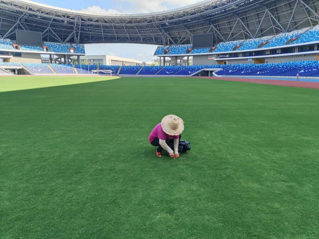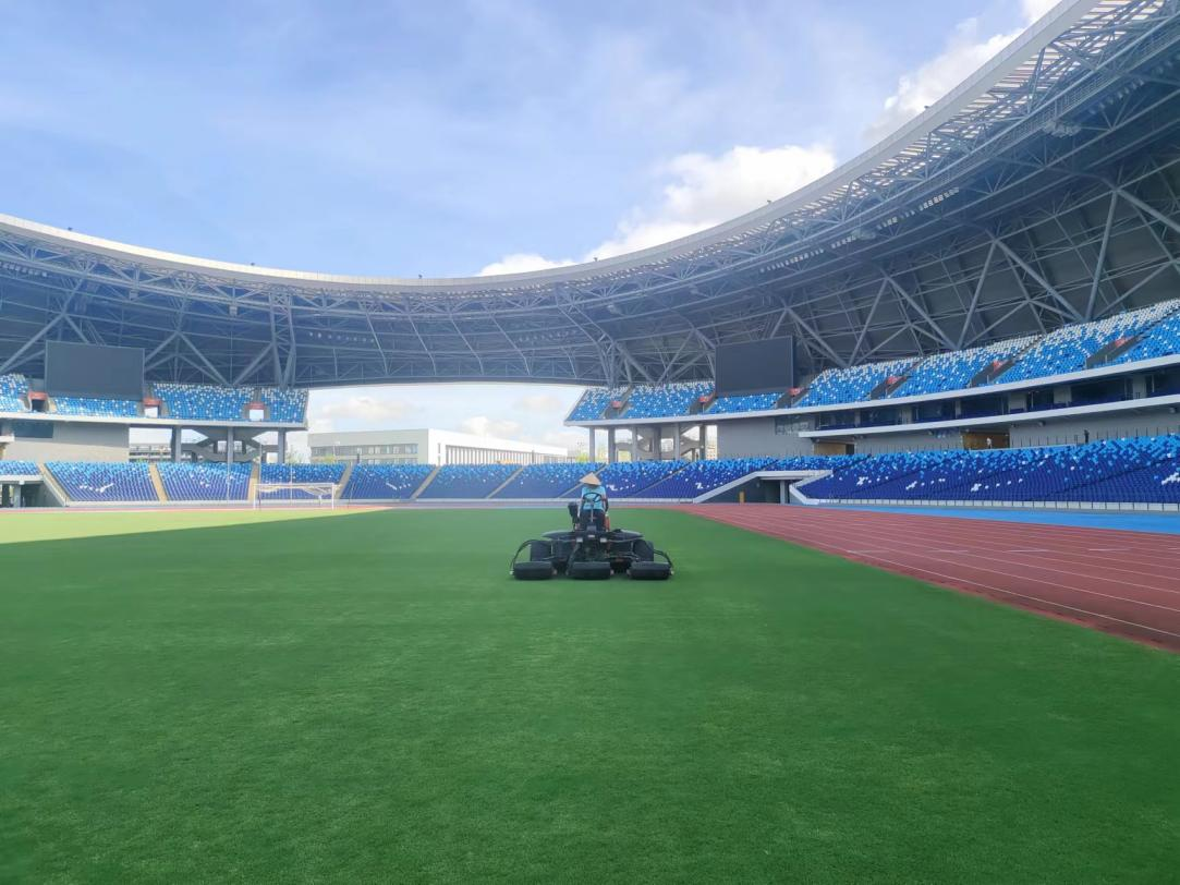 For the measures for maintaining the lawn during the preparation of the Asian Games, Ma Zhanwu, the field engineer of Pan-China Sports, said: "At present, we mainly take the following maintenance measures: The first point is that we need to reduce the height of the grass and carry out low pruning; The second point is to ensure enough watering every day, once in the morning and once in the evening; The third point is to do a good job in pest prevention and adequate fertilization."