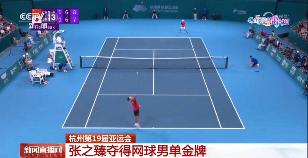 The Hangzhou Olympic Sports Center Tennis Center was the venue for tennis events at the Hangzhou Asian Games. Chinese female singles player Zheng Qinwen defeated her teammate Zhu Lin to win the gold medal; Chinese men's singles player Zhang Zhizhen defeated Japanese player Mian Guanyangjie to win the championship, and the Chinese team won the Asian Games men's singles tennis championship for the first time in 29 years.